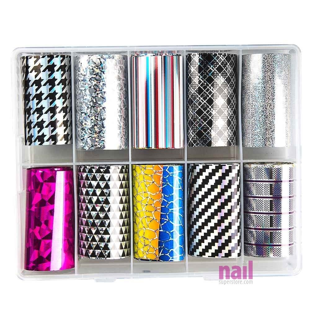 • Reflective Geometric Design: Essential reflective patterned nail transfer foil with chic geometric designs