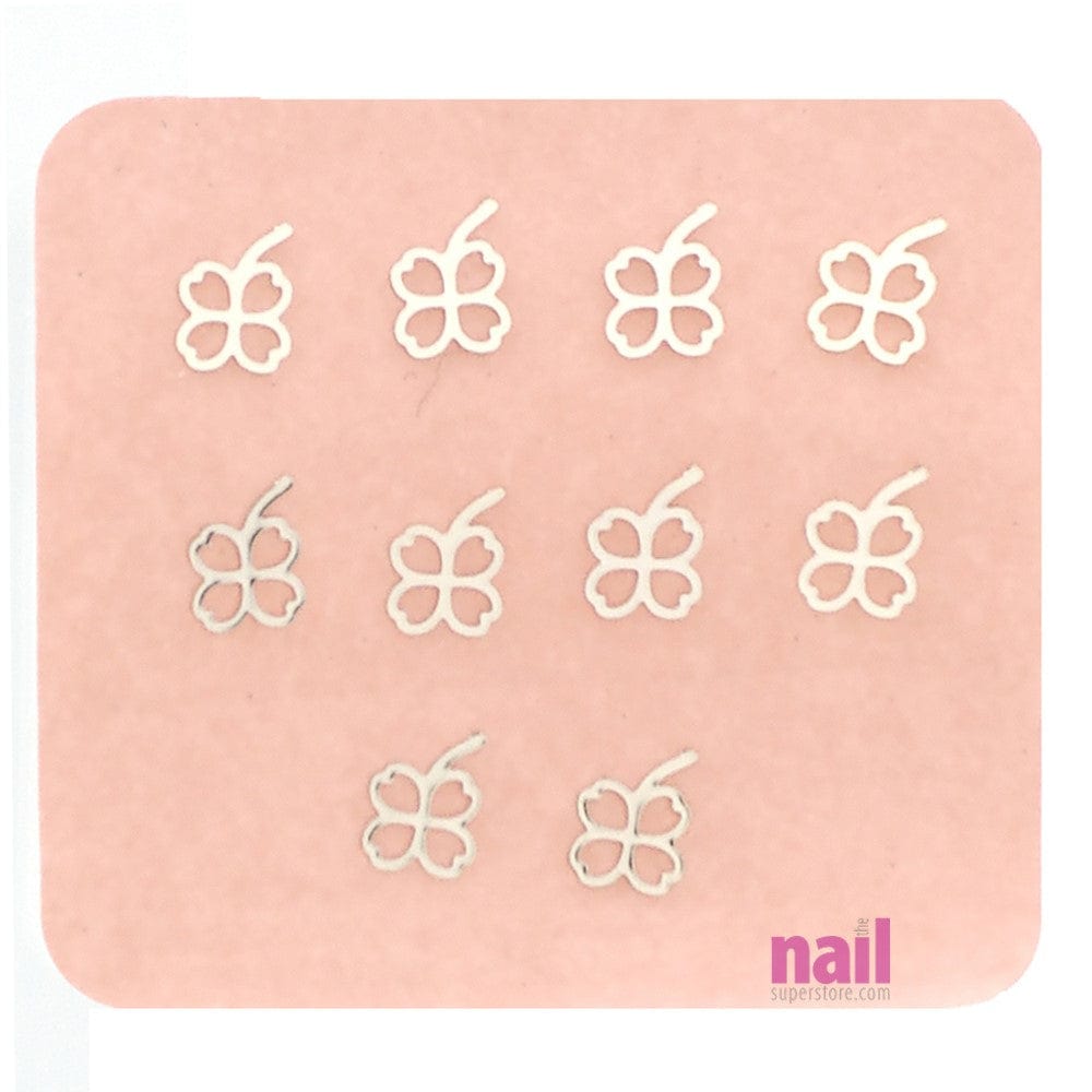Japanese 3D Nail Charms | Silver Clover - 10 pcs