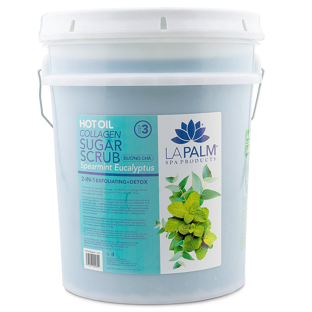 The La Palm Spearmint Eucalyptus Hot Oil Sugar Scrub delivers a cooling, invigorating treatment that calms the senses while polishing the skin. Ideal for salons offering therapeutic or seasonal services, now in a cost-saving 5-gallon size.
