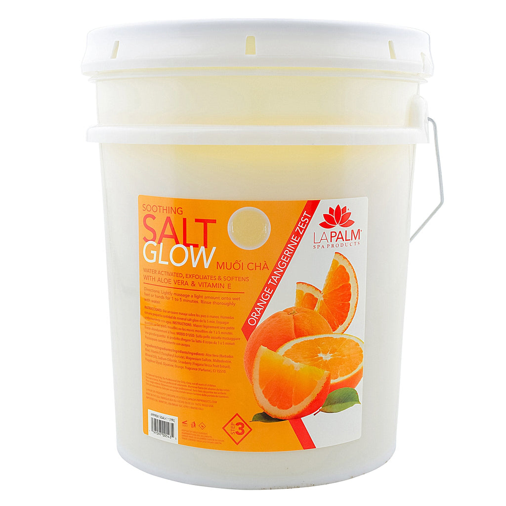 La Palm Salt Glow – Orange Tangerine Zest (Yellow) is a rich salt-based scrub that buffs away dry, flaky skin while restoring glow and softness. The uplifting citrus fragrance makes it a customer favorite for energizing spa treatments.