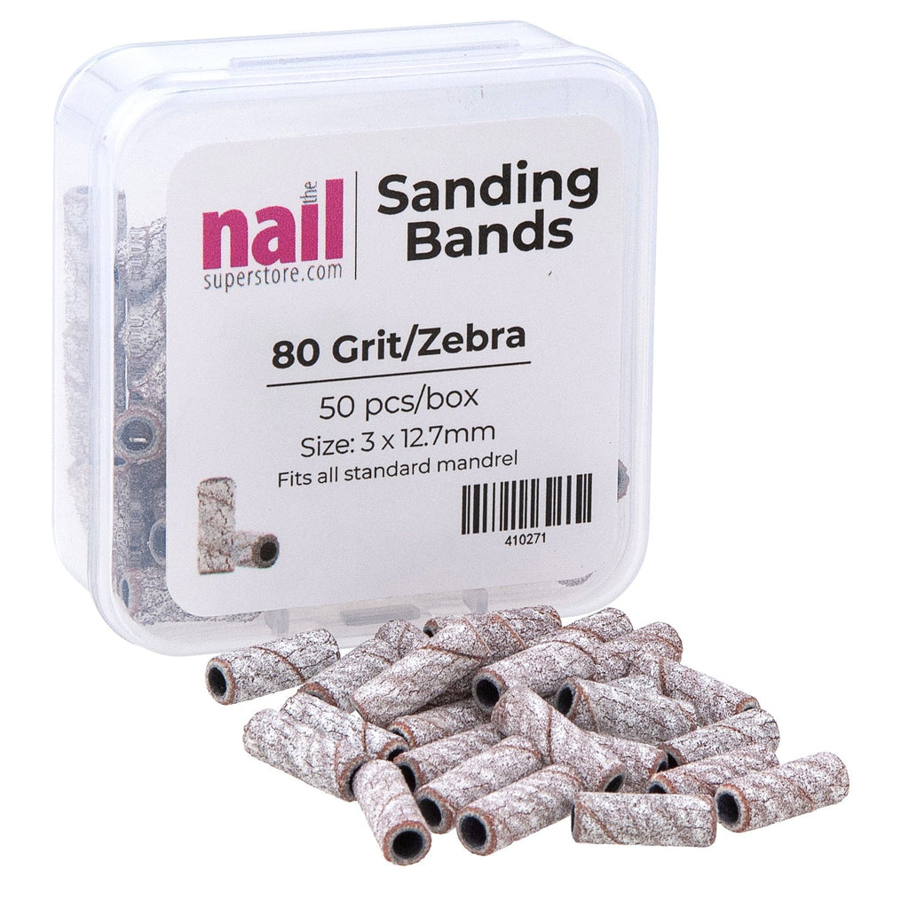 The MX Premium Mini Zebra Sanding Bands in coarse grit #80 are designed for professional nail technicians who need a compact yet powerful tool for thinning thick acrylic, gel, and dipping powder. These mini sanding bands are perfect for removing gel overlays or shortening acrylic and artificial nails with ease. The durable zebra-coated material ensures long-lasting performance while minimizing heat buildup.