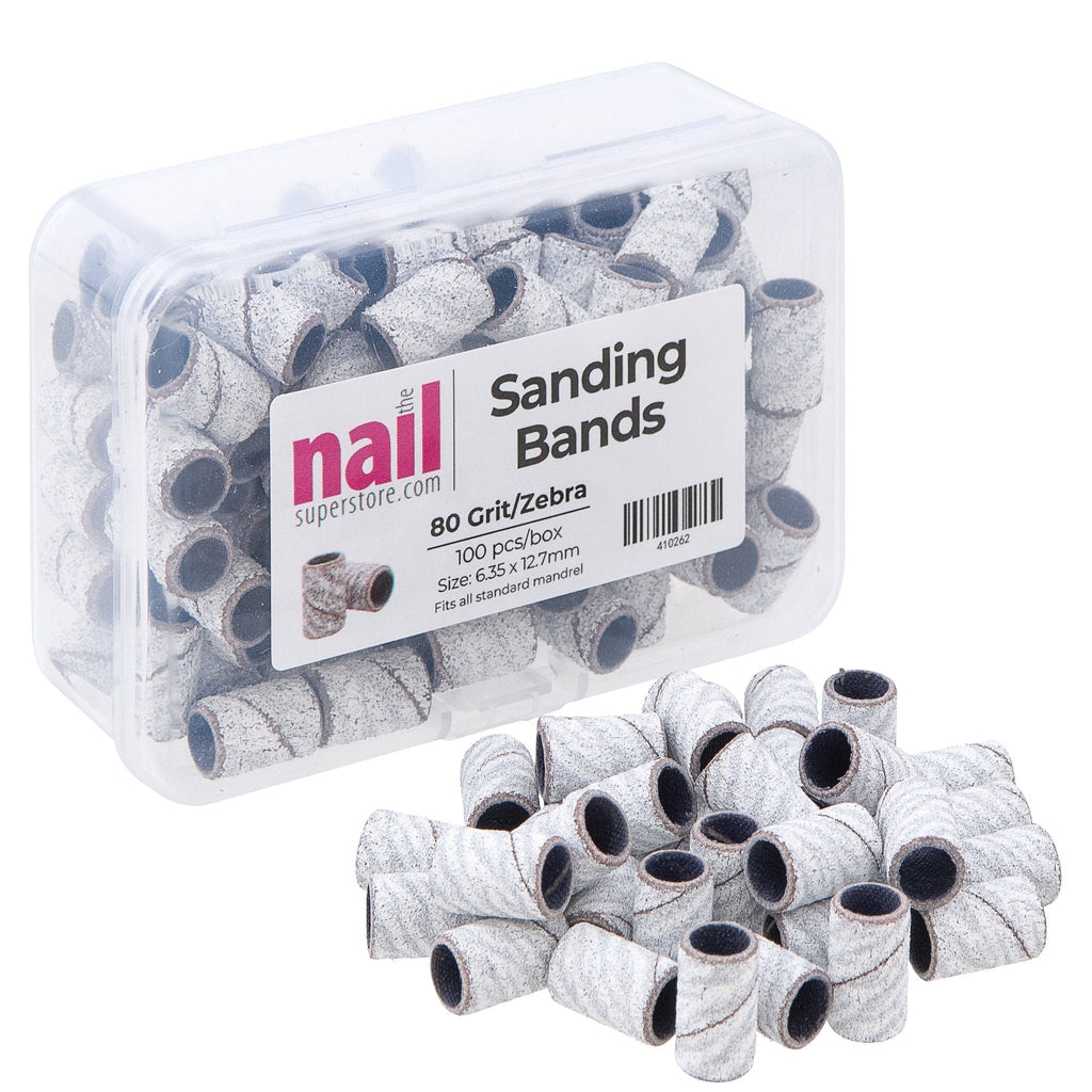 The MX Premium Zebra Sanding Bands in coarse grit #80 are designed for professional nail technicians who need efficient shaping and bulk removal. These high-quality sanding bands work well on acrylics, gels, and natural nails, offering smooth and even filing without excessive heat buildup. The durable zebra-coated material provides superior abrasion resistance for consistent performance.