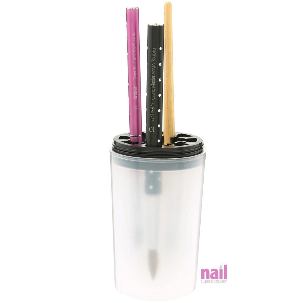 •Plastic grate on bottom of jar allows to loosen acrylic from bristles of brush