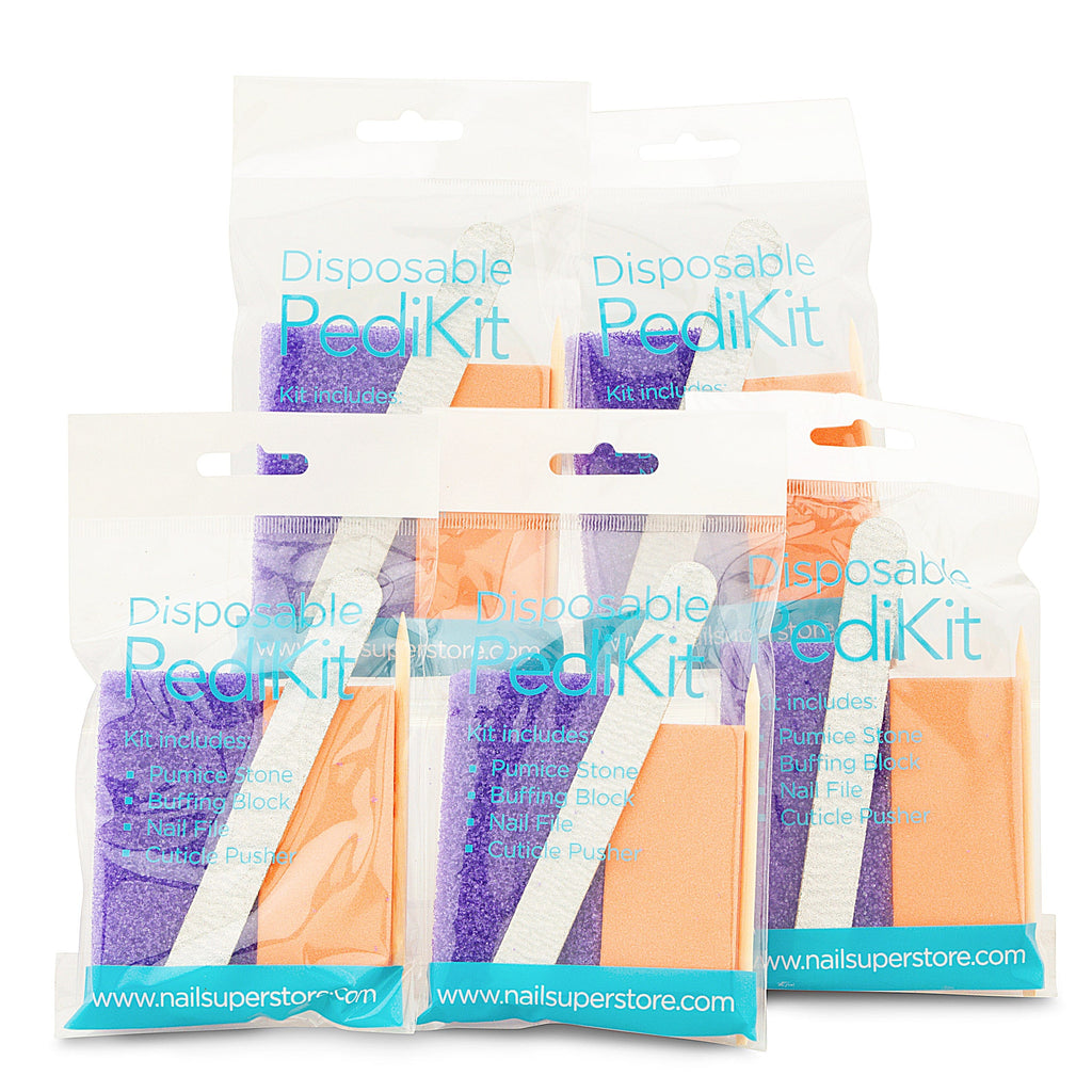 • 200 individually wrapped pedicure kits include: foot file block, buffing block, nail file, and wood stick in each kit.