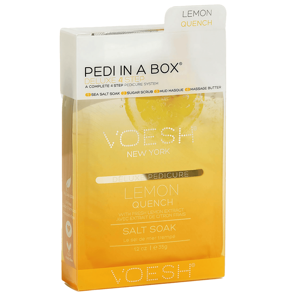 Dive into a zesty dream with our Lemon Quench Pedi in a Box 4 Step. This all-in-one spa pedicure kit, enriched with natural lemon extract, is a hydrating heaven for thirsty, dry skin, offering a refreshing burst of moisture and renewed vibrancy.